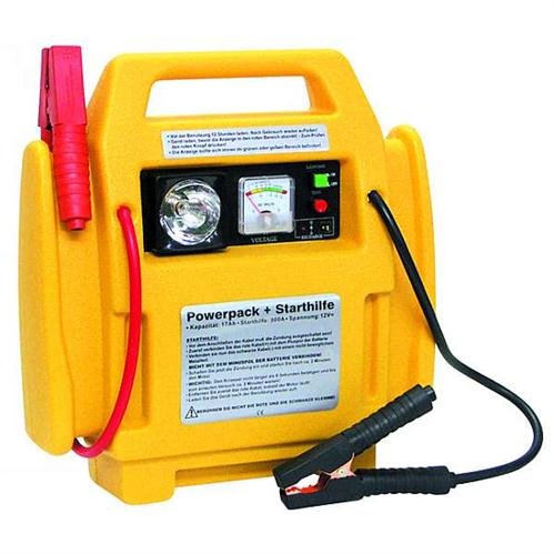 Technische Daten: - Akku 12V/17Ah - Starthilfe bis zu 900A - Ladeanzeige - Ausgang für 12V Geräte wie Werkzeuge, Pumpen oder Kühlboxen - Lieferung inklusive 230V-Ladegerät und 12V-Ladestecker für Zigarettenanzünder Passt mit HxBxT=40x35x10cm wirklich in den kleinsten Kofferraum. Immer griffbereit um sich selbst oder anderen schnell aus der Patsche zu helfen.